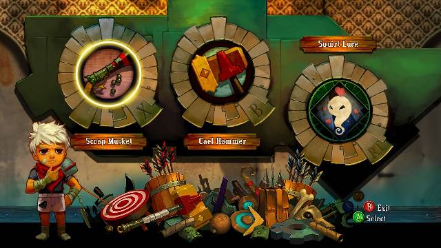 La verdad que la variedad de armas y mejoras es alta, así que podréis disfrutar con su variedad. Entre las armas encontraremos desde arcos, martillos, carabina, machete u otras más extrañas como un fuelle de fuego (vamos un lanzallamas) o colmillo de repetición (arma en plan ametralla, creada de los huesos de una bestia) … y así hasta un total de once… y si a ello le sumamos las cinco mejoras en caracteres como la velocidad, la potencia, el alcance, etc nos encontramos ante un apartado bien surtido y variado, pudiendo decir que hasta original, ya que algunas armas necesitarán de una seria habilidad para utilizarlas correctamente. Hay que decir por último que siempre podremos llevar con nosotros dos de estas armas, pudiendo ser elegidas en la armería y un ataque especial que corresponderá a una de las armas que llevemos.