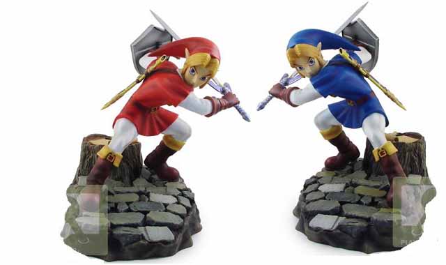 En ella podremos ver a un links adulto tanto con la túnica Goron (La roja) como con la túnica Zora (la azul), en un entorno con piedras y un árbol cortado, de una calidad pocas veces vista en una figura de este tipo.