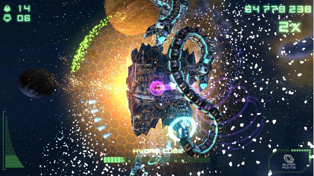 Super Stardust Delta, nos presenta la experiencia jugable de un juego de naves pero en un escenario orbital, es decir, toda la acción se producirá alrededor de un mismo punto.