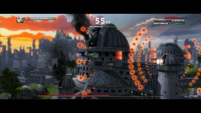 Pasando a otras novedades que posee el juego, es un curioso tiempo bala, el cual nos permitirá ralentizar el tiempo, hasta que consumamos una barra colocada en la parte superior derecha de la pantalla, y el cual nos vendrá muy bien a la hora de esquivar las cientos de balas que flotan en el aire.