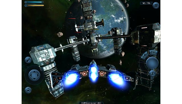 No echamos de menos un pad en ningún momento, los controles que aparecen a derecha izquierda , estan bien situados, y permiten jugar cómodamente. Accedemos sin problema a las armas espeeciales o los controles de navegacion. El control de la nave es perfecto, fluido , y sin movimientos bruscos. Apuntar si se hace un poco más complicado , pero todo es acostumbrarse a esta mecánica en el Ipad.