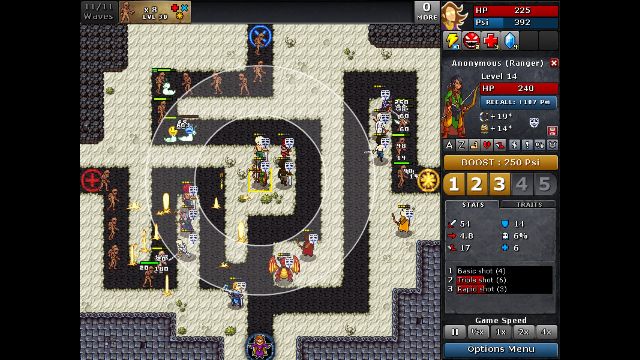 Los enemigos son variados, y poseen gran cantidad de posibilidades extras, de niveles y de poderes, poseyendo al igual que nosotros unas posibilidades de ataque, defensa, de salud e incluso de magia. Así que tendremos que estar muy atentos a ellos para saber en cual debemos centrar nuestro ataque. Porque eso es una cosa curiosa de este juego, ya que nos dará la opción en cada torreta para indicar en qué enemigos quiere que se centre, es decir, atacar al más rápido, al más fuerte, al que más energía tienes, etc. Siendo esta una buenísima idea que no se ve en los juegos de torretas generalmente.