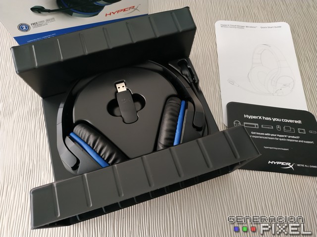 En el interior de esta encontraremos; los propios auriculares, el adaptador inalámbrico USB, y un manual de instrucciones, echando en falta una pequeña bolsa para guardar nuestros auriculares, pero bueno, en general bastante correcto.