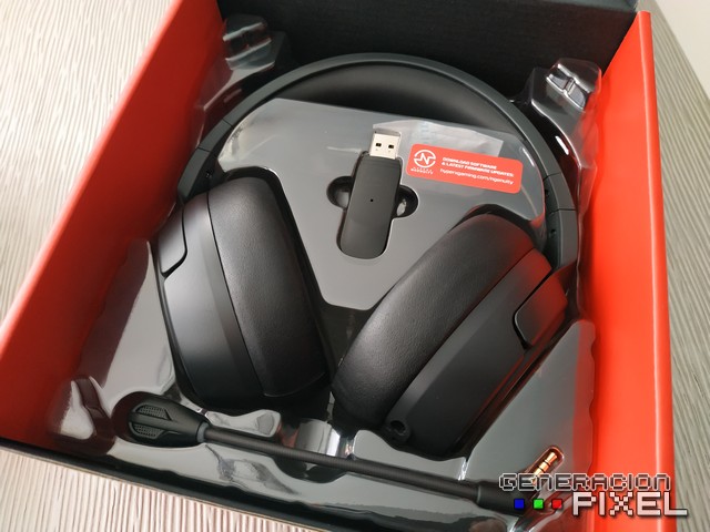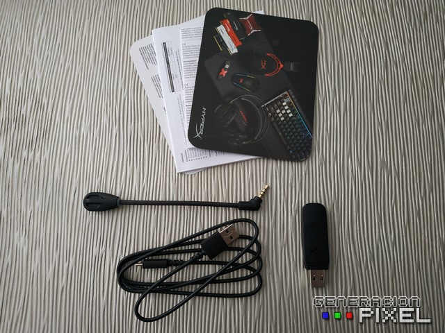 Poniendo sobre nuestra mesa de pruebas lo que encontramos en el interior, deciros que estos nos parecen correcto en cuanto a complementos, ya que nos encontramos con los propios auriculares, su micrófono extraíble, el receptor usb, un cable de carga usb, y un siempre agradecido manual, con algunos detalles y ayudas con los auriculares, solo echando en falta dentro de una gama así una bolsa protectora y un posible recambio de almohadillas.