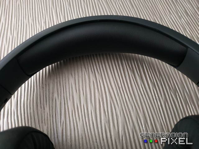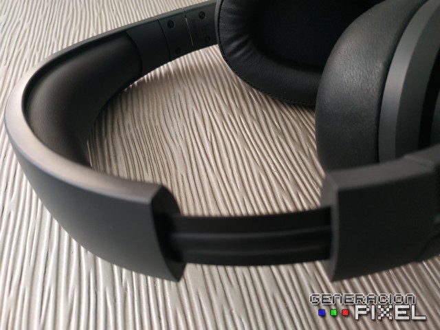 En la zona de la diadema nos encontramos con la estructura acero y plástico acolchada con piel sintética y esponja viscoleastica, la cual podremos adaptar al tamaño de nuestra cabeza y que la verdad nos ha parecido bastante cómoda y muy amoldable a nuestro contorno de la cabeza.