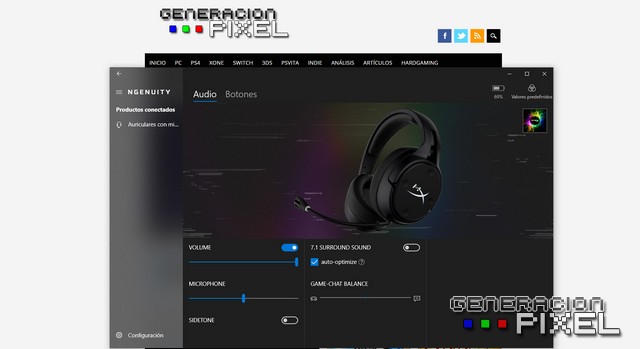 Eso sí, como es normal, y como novedad, se ha creado un nuevo software para la ocasión llamado NGENUITY, que podremos bajar de la web de HyperX, y que sin ser especialmente completo, especialmente echando en falta ecualizadores, si es cierto que cumple bien con algunas labores de personalización y de ajuste de audio.