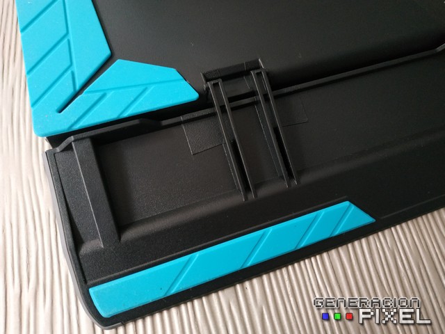 Eso sí, hemos notado algo más frágiles dos puntos; por un lado los enganches del reposamuñecas, y por otro lado la parte azulada de goma de la base, la cual nos ha parecido que se puede despegar a la larga. Pero todo esto el tiempo nos lo dirá.
