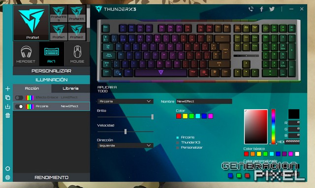 Eso sí, si queremos sacar el máximo rendimiento a este teclado, lo mejor será que nos bajemos de la página de ThunderX3 el software la marca el ThunderX3 HEX. Con este podremos configurar muchos puntos del teclado; desde atajos, definir teclas, y modificar y personar la iluminación de este. Un software que ha mejorado bastante, y que nos parece esencial para disfrutar este AK7.