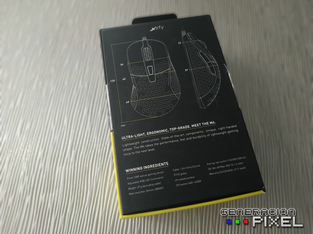 Empezando con el ratón, y su presentación al público, os tengo que decir que este llega en una pequeña caja con un corte estético bastante modernos, en el que se mezclan los colores negros y amarillos, acompañados de una bonita imagen del periférico en el frontal, y cantidad de detalles y características en los laterales.