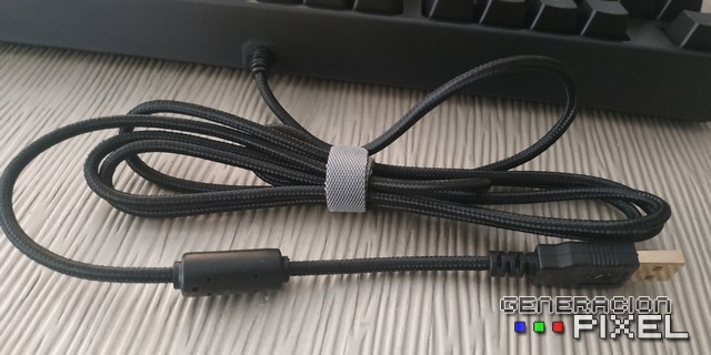 Por lo que respecta al cable de este. Deciros que posee unas dimensiones de 1,8m de textil trenzado, algo más rígido de la cuenta. Y terminado en USB, sin posibilidad de ser extraído.