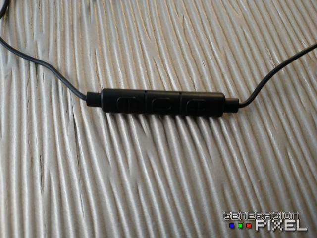 En la parte intermedia del cable se ha colocado un alargado mando con el que tendremos el control de volumen y, del micrófono. Teniendo un correcto tacto. Y en el que se la ha introducido la opción de Pulsado para hablar.