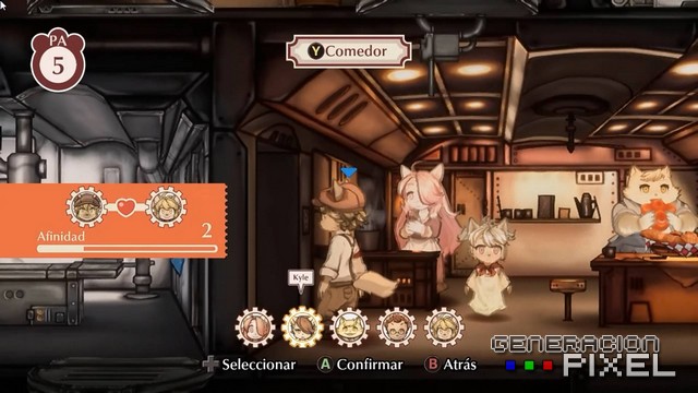 Siendo aquí donde entra también una parte rolera muy importante, y realmente adictiva por su constante evolución. Especialmente llevada por la relación entre los diferentes personajes. Cosa que se produce dentro del propio tanque. Encontrando con una gran cantidad de labores que llevar a cabo, siempre dirigidas hacia la personalización y mejora, tanto de nuestros protagonistas como del propio tanque en sí. Y en donde destaco un sistema de afinidad que influye mucho en la forma de actuar de los diferentes personajes a nivel incluso potencial.
