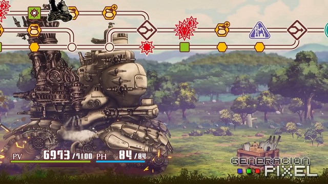 Empezar toca, como suelo hacer habitualmente, por lo que se refiere a su concepto base y a sus mecánicas principales. Y es que entrar en Fuga: Melodies of Steel es entrar en un juego donde la narrativa se mezcla de una forma sutil y perfectamente bien entrelazada con un juego de rol por turnos con clara tendencia estratégica. Y en el que la conducción, adaptación, preparación, e incluso, relación de seis personajes en el interior de ese gran tanque suponen la parte principal de los conceptos de juego.