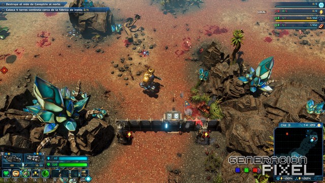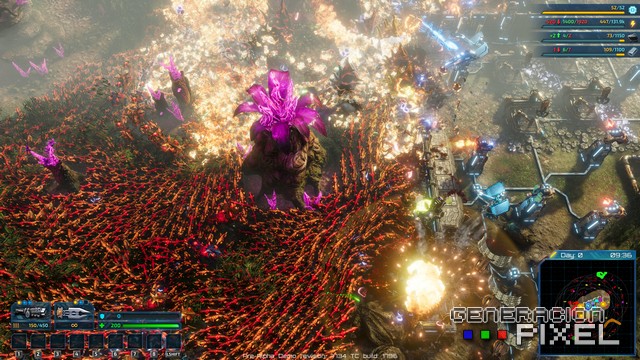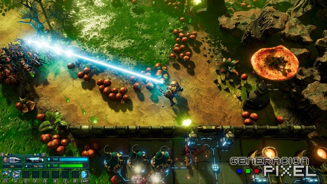 Problemas que vienen especialmente dados por lo beligerante qué es la población alienígena del planeta. Y en la que tendremos que tomar medidas de primera mano gracias a un sistema de combate intenso y con un notorio control rotatorio. En el que tomando el papel de un potente robot armado hasta los dientes. Que nos mete en acción, donde la utilización de variados armamentos a corte y larga distancia, junto a la implementación de potenciales habilidades, y la ayuda de variadas edificaciones defensivas. Hacen que nos introduzcamos en un caos beligerante totalmente apasionante, espectacular y, llenos de buenos momentos, donde la calmada estrategia pasa a un segundo plano.