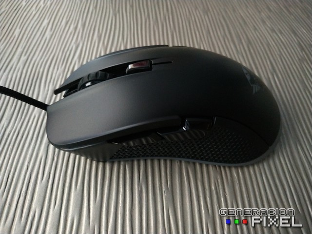 Ya con el ratón en la mesa. Lo primero que os tengo que hablar es del bonito diseño que posee. Con un corte moderno. Donde gracias a su estructura el agarre de palma o de dedos se puede alternar.