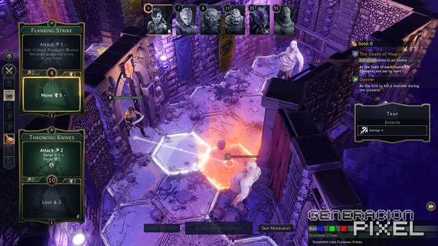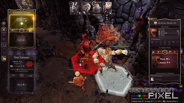 Un juego que toma dos importantes puntos a entender. Y que desde los inicios son las bases centrales de la experiencia rolera que se nos pone ante nuestros ojos, bajo ese tablero repletos de hexágonos. Bajo una historia de mercenarios, mazmorras, y un mundo lleno de oscuridad, que nos enfrenta a toda clase de enemigos. Y en el que tomaremos el control de un grupo de hasta cuatro personajes. Entre un total de diecisiete a elegir, con variadas, originales, y cuidadas habilidades y potenciales que poder utilizar a lo largo de las misiones y retos. Que este universo nos irá proponiendo bajo una interesante campaña, con variedad de elecciones que cambiarán nuestro rumbo, y nuestra experiencia tanto en solitario como en cooperativo.