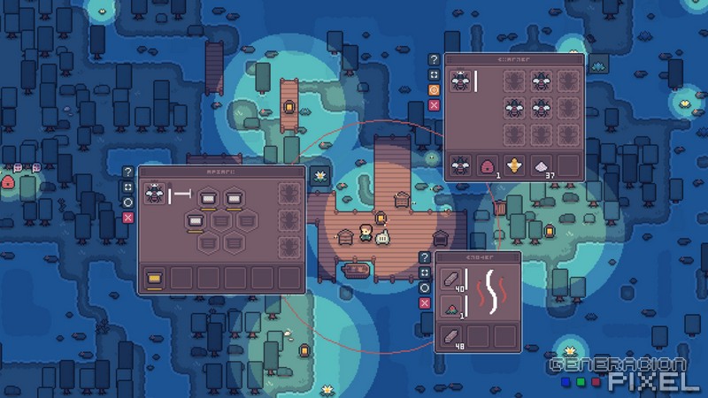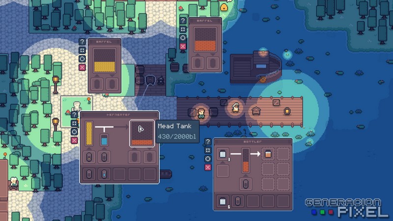 Una vez ya aprendido todo, y entrado en concepto jugable y mecánico. Empezamos con las labores generales de recolección de materiales de todo tipo. Con los que empezamos a dar forma a nuestras herramientas, nuestro puestos de trabajo o gestión de recursos, e incluso nuestras necesidades de habitabilidad y descanso. Todo bajo un sinfín de recetas y posibilidades de libre creación y modificación de la zona que nos lleva a unas posibilidades jugables y de expansión tremendamente variadas. Todo ello en un amplio mapa bien diferenciado por biomas, que se irá abriendo a nuestro paso, siempre bajo la necesidad de ampliar nuestras reservas de recursos, descubrir nuevas posibilidades, encontrar nuevas amigas hacedoras de miel, o como no, seguir conociendo a la buena gente de la zona.