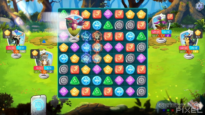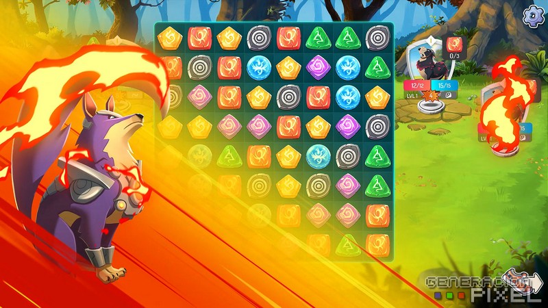 Más allá de esa concepción rolera. Toca el turno de hablaros de que todo cambia cuando entramos en los combates. Y es que el juego sabe implementar muy bien el concepto de los puzles de habilidads donde unir tres o más piezas será nuestro reto. Y donde en esta ocasión el conectar tres o más piezas. En las que dependiendo del color o de la forma que lo hagamos, nos lleva diferentes ataques normales o especiales, a recuperaciones de energía o, a crear problemas al rival quitándole piezas o bloqueando sus acciones.
