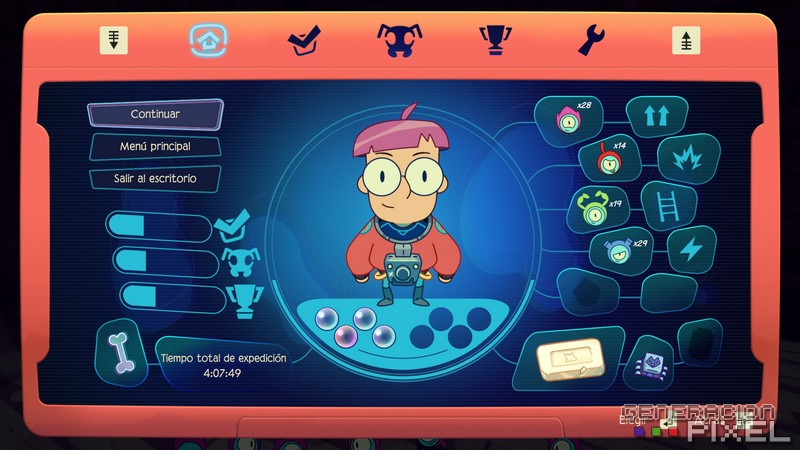 Unos seres, que como ya os he referido, poseen características diferentes. Las cuales nos llevan a tener la opción de utiliza poderes, estos basados en; fuerza para levantar o mover objetos, explosivos, eléctricos, puentes o apilables en modo torreta. Y que deberemos ir recolectando dentro del escenario, teniendo muy en cuenta la cantidad que tenemos de cada uno de ellos, y los que necesitamos para las variadas acciones. Y aunque son muy mecánicas y bien claras, siempre se nos darán pistas, o detalles que nos ayuden a ser completistas.