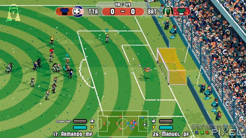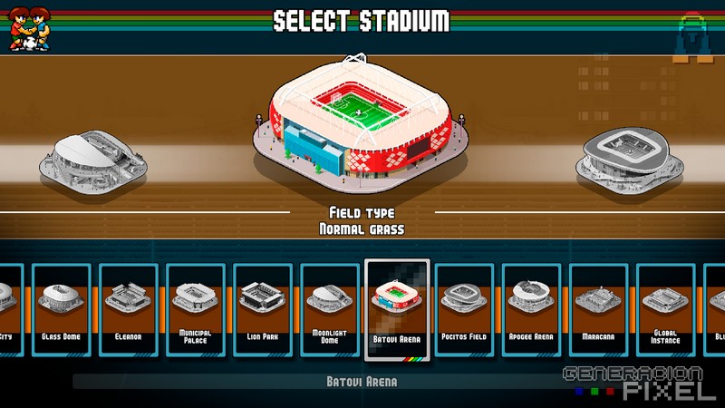 Desde el punto de vista grafico. El juego alcanza unos niveles pixelados realmente preciosos. Con un diseño artístico de personajes y estadios que da gustos verlos en movimientos. Y donde el coloridos y los variados efectos tanto ambientales como en los diferentes efectos jugables son una delicia para darle espectacularidad a estos pixelados partidos.