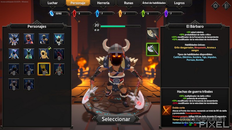 Fuera de cada una de esas fases se ha planteado un nexo rolero. Donde un sencillo árbol de habilidades, un herrero o un centro rúnico, le dan otra capa más de potenciación. Y donde la gestión y desbloqueo de personajes, y de un sistema de maldiciones que hacen más complejo cada uno de lo mapas, completan la experiencia.