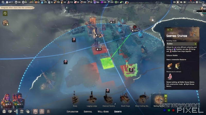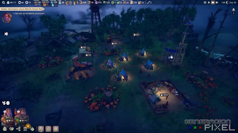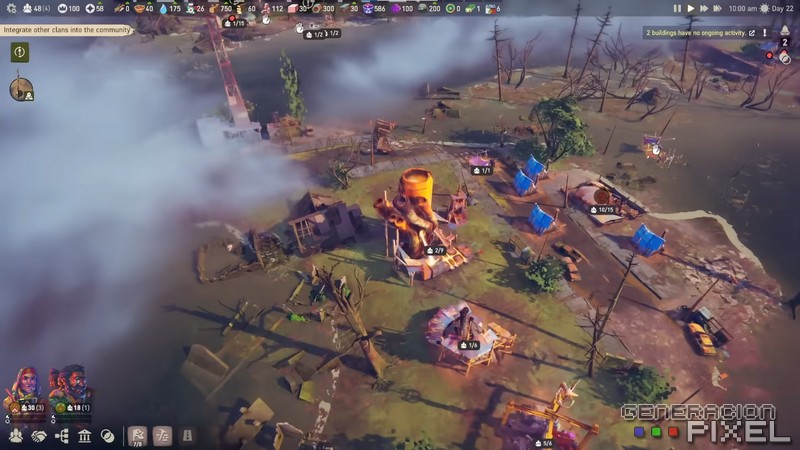 Curioso es por otro lado la exploración de los entornos. Y es que nuevos edificios, recursos muy interesantes, y una serie de situaciones que pueden mejorar o destruir nuestra población, le dan una intrincada intriga a cada paso por este mapeado. Dando otro paso más adelante cuando nos topamos con el tema de los clanes y personas que llegarán a formar parte de una nueva sociedad, pero que conllevan una serie de problemas que tendremos que saber solventar con los posibles daños colaterales. Y es que la importancia a la toma de decisiones con ese concepto casi de conversación rolera es algo que le queda genial.