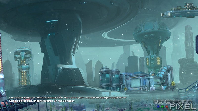 Dentro del juego, os quiero poner en contexto, ya que será primordial para entender el concepto de estructuras, energía y movilidad. Ya que nos acercamos a una humanidad que tras el impacto de un meteorito en la Tierra, el cambio climático que ha supuesto la subida de los mares, y la imposibilidad de vivir en tierra firme. Por lo que solo nos queda adaptarnos al fondo del mar. Y con ellos esta excusa acuática de construcción.