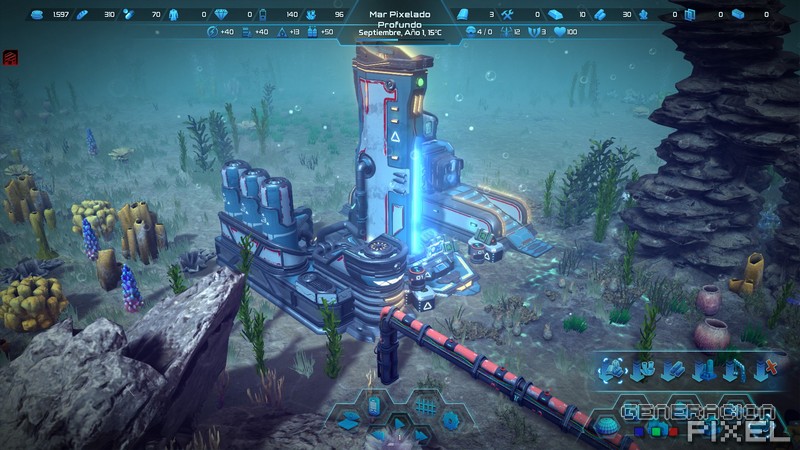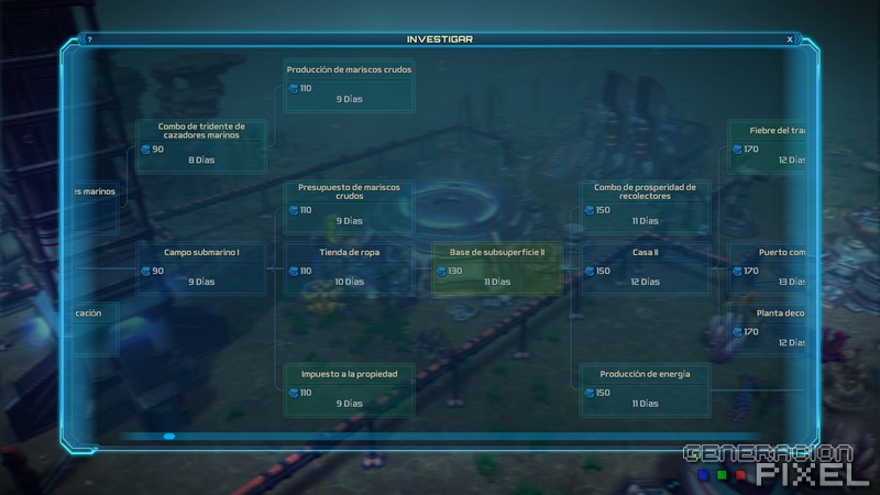 Siendo este el momento en el que empezamos a formar parte de este interesante juego de estrategia. Donde un bien planteado tutorial nos irá abriendo el camino a entender las diferentes edificaciones y conceptos de supervivencia para hacer viable la vida bajo el mar.