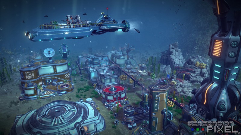 Una vez puesto en funcionamiento los principales motores que hagan viable la vida humana y su fácil mantenimiento, me he empezado a encontrar con el gran número de variadas clase de edificios que posee el juego. Unos edificios que nos llevan a almacenes, cultivos, piscifactorías, áreas de trasporte, o zonas residenciales llenas de tiendas y bares. Un complemento a ese compacto y extenso sistema industrial que deja una estética muy metálica y poco agradecida a los preciosos fondos marinos.