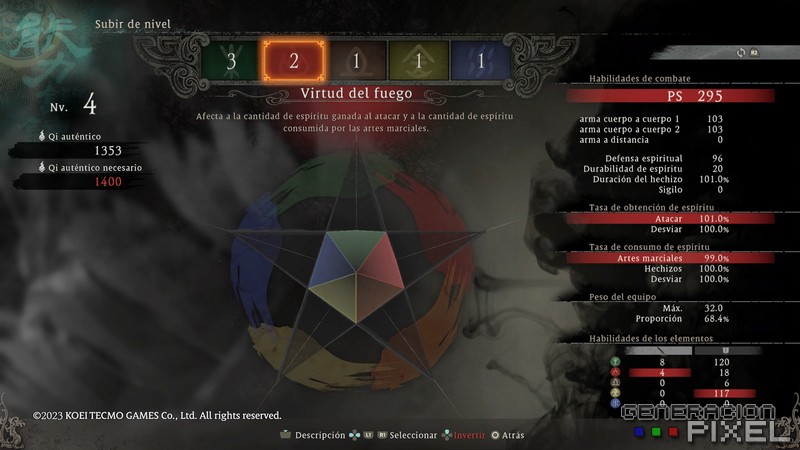 Uno de los puntos más particulares, y que ya he nombrado, viene de parte de una barra de espíritu. La cual posee un concepto bastante interesante dentro de nuestra forma de enfocar el ataque y la defensa. En la que la subida y bajada de esta, nos lleva desde el puro aturdimiento hasta potentes ataques. Siendo una barra que en todo momento tenemos que tener muy presente, tanto por nuestra parte como por la de los enemigos, que también la poseen. Obligándonos a rellenarla a base de golpes medios y livianos, y darlo todo cuando queramos realizar grandes ataques o daños especiales. La verdad que es un concepto que en juego se le coge rápidamente el ritmo.