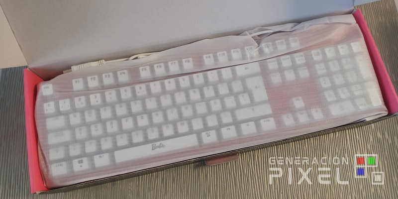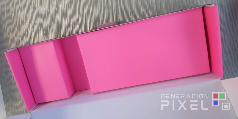 El diseño general del producto es bastante cuidado. Con ese envoltorio rosa que muestra esa licencia que lleva por bandera, y que va a hacer de este un producto muy para fans. Todo ello con un interior bien acabado y organizado. Que recubre y protege con seguridad este pack teclado, ratón y alfombrilla. Encontrando además en su interior el clásico librito de instrucciones.