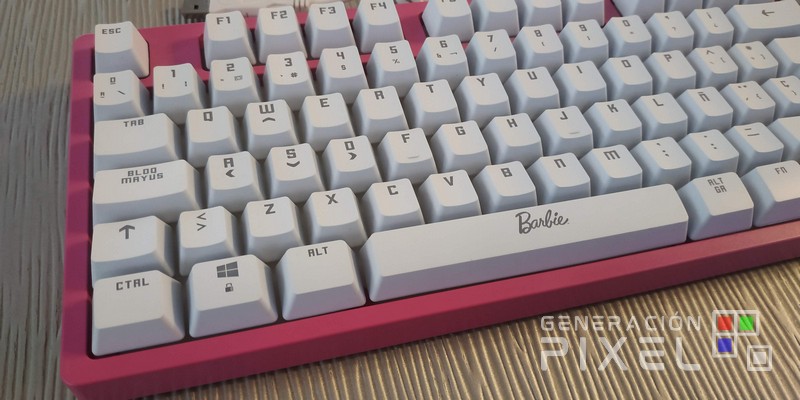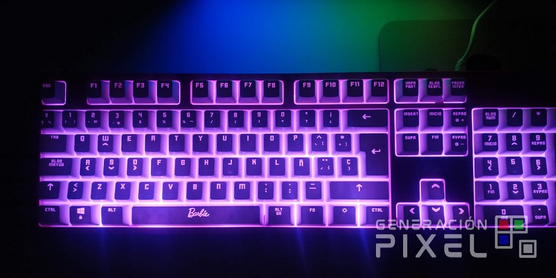 Con los productos sobre la mesa, quiero empezar hablando de su estilo. Comenzando por el teclado, el cual posee una coqueta y bonita estética. Con un cuerpo plástico de una correcta calidad. Que se va a ver mejorada con un cuidado diseño con iluminación LED, con los colores oficiales de Barbie, el rosa y el blanco, como protagonistas.